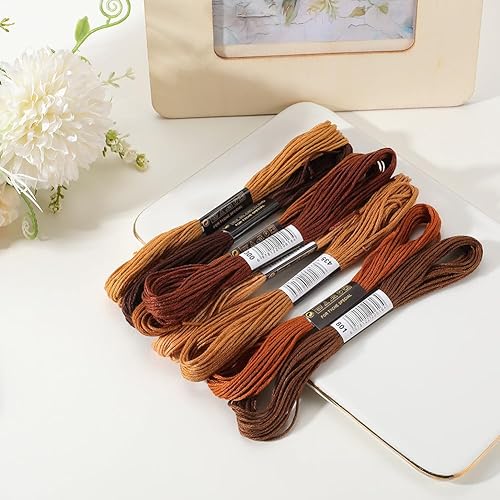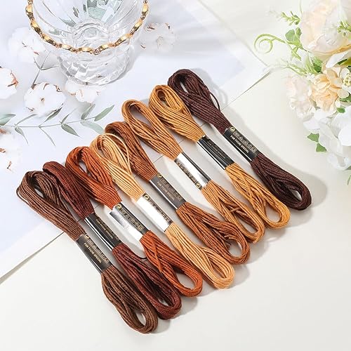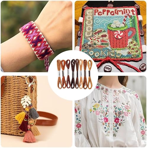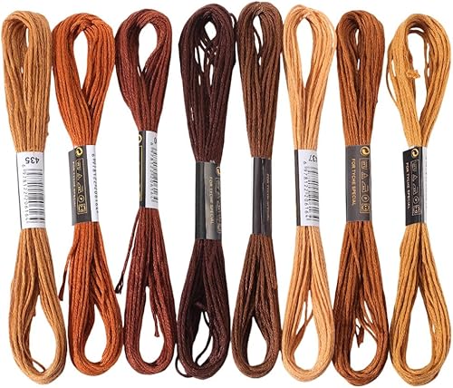 CABODYALS 8 écheveau 6 brins de Fil à Broder Marron en Polyester Dégradé et Panaché pour Bracelet D'Amitié Point de Croix pour la Fabrication de Bijoux la Couture à la Main le Tricot les Travaux Manue