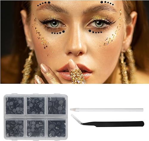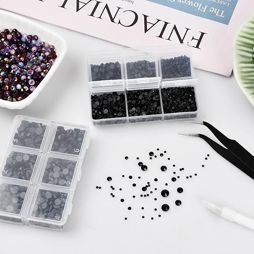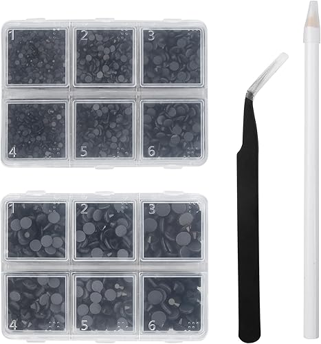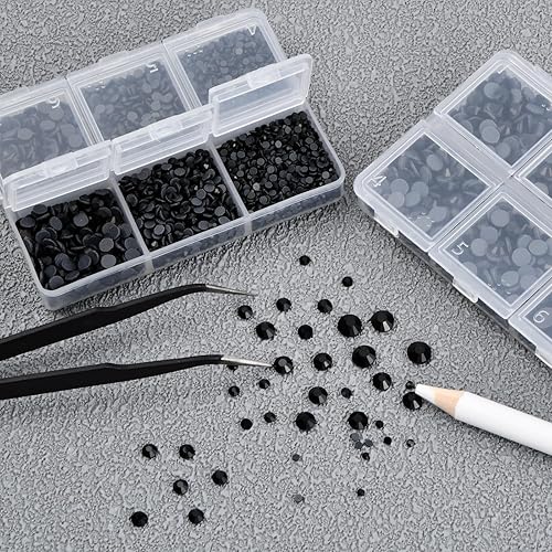 Wisebom Hotfix Strass 6600 Pcs Dos Plat Cristal Strass Artisanat avec Brucelles Ramasser et Stylo de Cueillette de Strass Noir pour Artisanat Nail Face Art Vêtements Chaussures Sacs Diy,6 Tailles