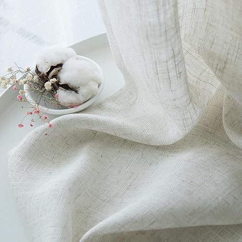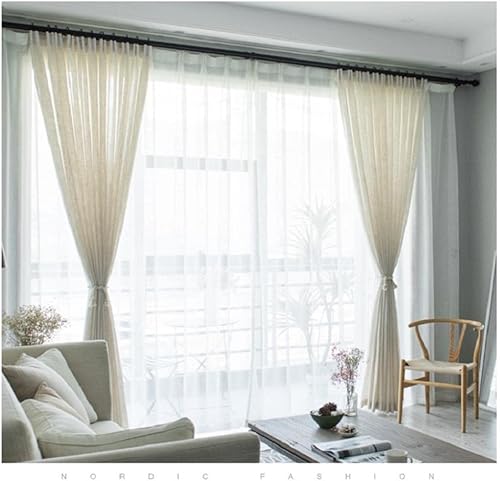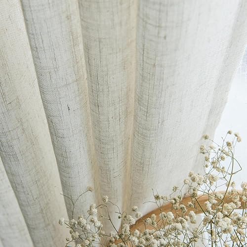 Rideau en Lin de Style Japonais Moderne Épaissir Le Rideau de Gaze contracté Chambre à Coucher Vague fenêtre Balcon Gaze ombrage écran de fenêtre-Blanc Ivoire, 1 pcs W130xH240cm, 1.Hook Top