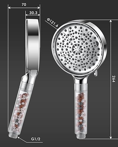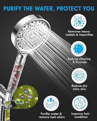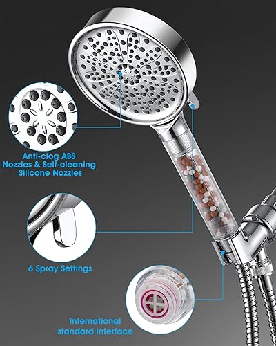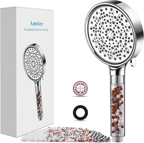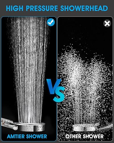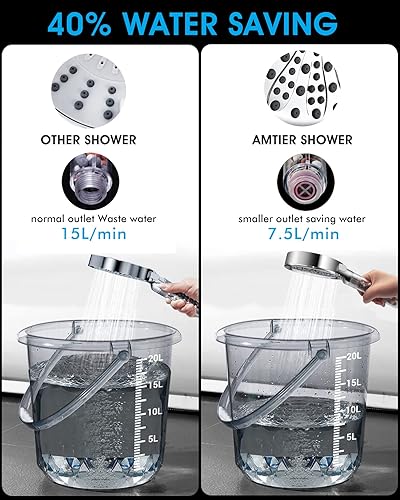Pommeau de Douche, Amtier Pommeau Douche Anti Calcaire Économiser d'Eau Haute Pression Système de 3 Couches de Filtration avec 6 Mode de Douche (pommeau de douche sans tuyau)