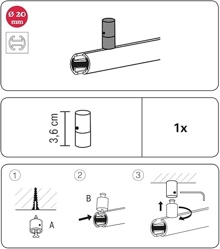 GARDINIA Support de tringle à rideau, Fixation plafond, Pour tringle avec 2 rails intégrés, Matériel de fixation inclus, Longueur: 3,6 cm, Effet inox