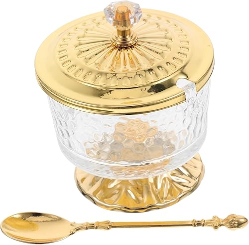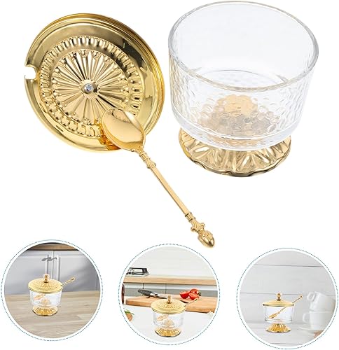 Hemobllo Sucrier En Verre Bidon De Cuisine L'assaisonnement Peut Salière Pot à Sel Salière Avec Couvercle Pot De Condiment Récipient à Sucre Bol De Sel Sucrier Couvert Doré Alliage De Zinc