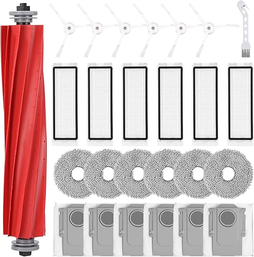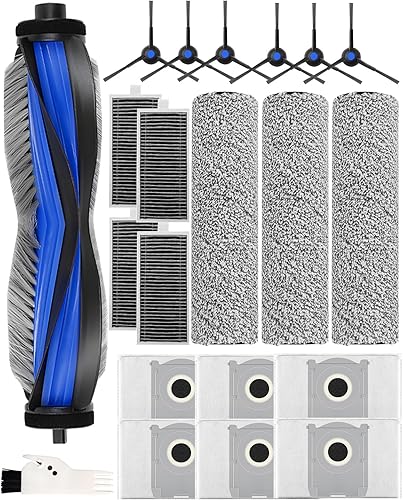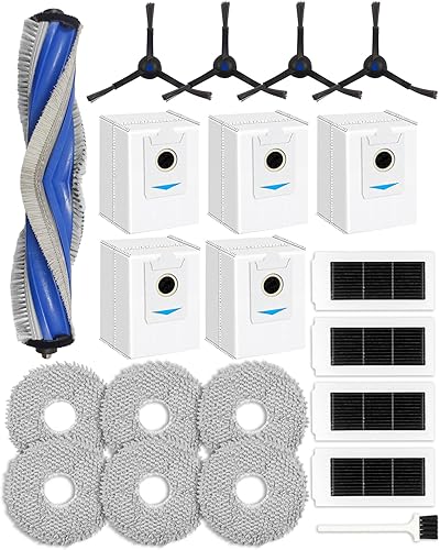 Lot de 21 Accessoires pour Robot Aspirateur ECOVACS DEEBOT X8 Omni / X8 Pro. 1 Brosse Principale, 3 Brosse à Rouleau, 4 HEPA Filtres, 6 Sacs à Poussière, 6 Brosses Latérales,1 Brosse de Nettoyage