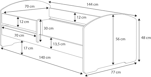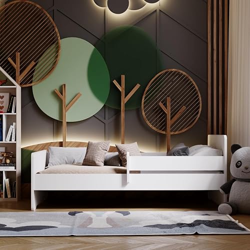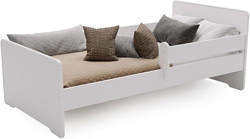 KOBI Lit Enfant Max Blanc avec Balustrade, Cadre | 140x70 | lit pour Une Fille et Un garçon | Ensemble Chambre d'enfant |