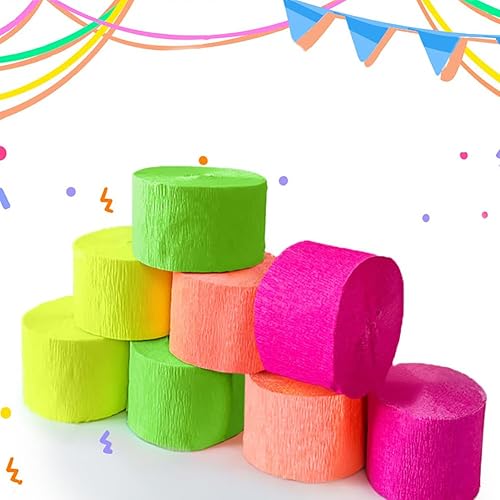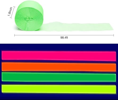 Lot de 4 Rouleaux de Papier crépon Fluo phosphorescents pour décoration de fête d'anniversaire