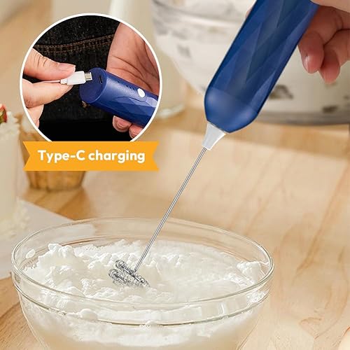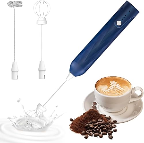 Mousseur à lait électrique portable avec 2 têtes - Mousseur à lait portable - Mousseur à lait rechargeable - Mini batteur à main - Pour café, crème, cappuccino latte