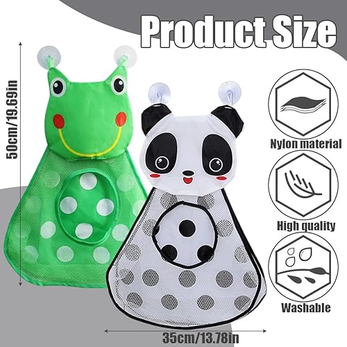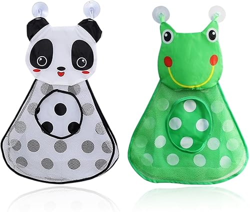 Lot de 2 filets de rangement pour jouets de bain, filet de rangement pour jouets de bain panda, filet de rangement pour jouets de bain pour bébé, filet de rangement pour jouets avec deux crochets