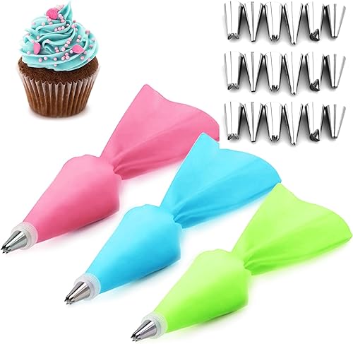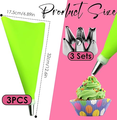 LURNODY Kit Poches à Douille, Poche a Douille Patisserie, 18 Douille Patisserie et 3 Poche a Douille Reutilisable, Poches à Pâtisserie Jetables, Décoration Gâteau,Cupcake,Biscuit,Desser