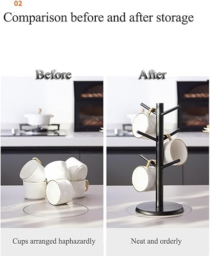 VANTOBEST Porte-tasses noir en forme d'arbre avec 6 crochets pour comptoir de tasses à café