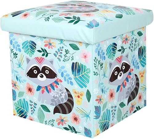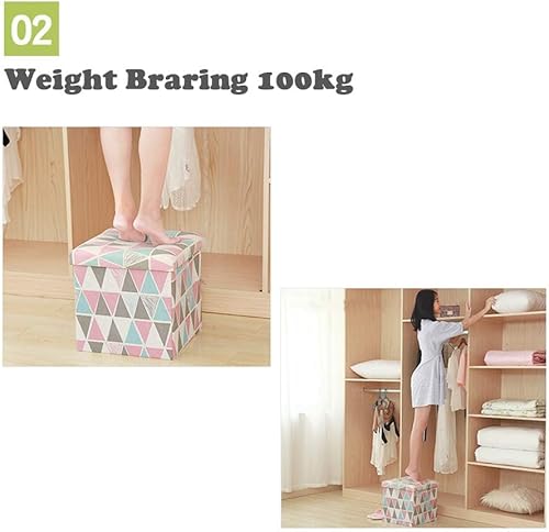 FANSU Tabouret Banc Pouf Pliable Coffre Boîte en Cube Lin, Animal Impression Siège de Rangement Pliable Gagner de l'espace Diverses Couleurs au Choix (30x30x30cm,Chat)