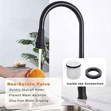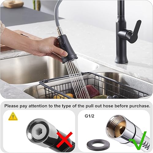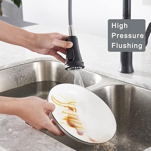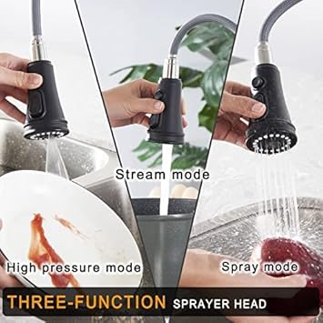 TinyYiko Pommeau de douche de cuisine, à 3 modes, avec bouton de rinçage haute pression, pour robinet de cuisine et d'évier, noir
