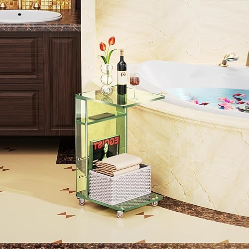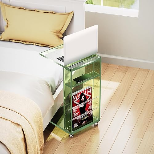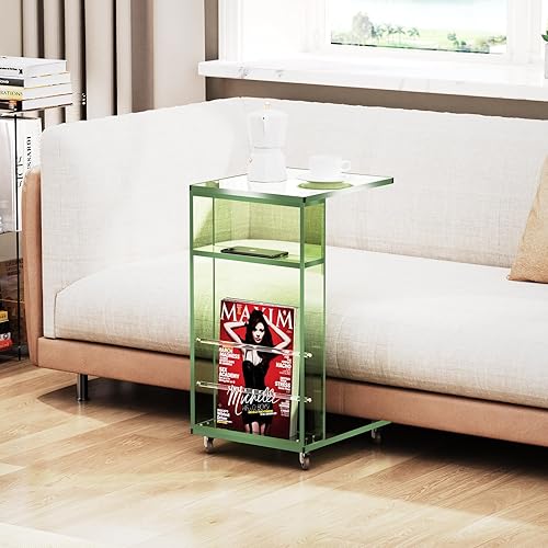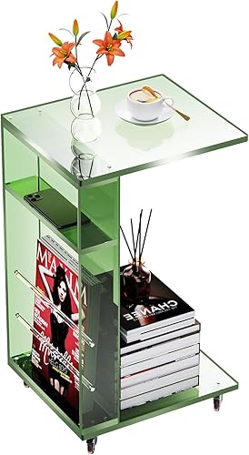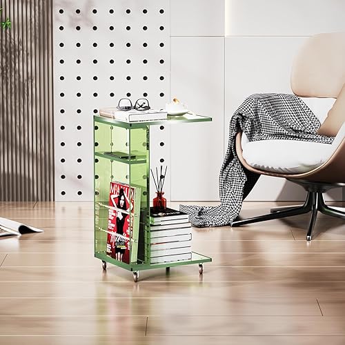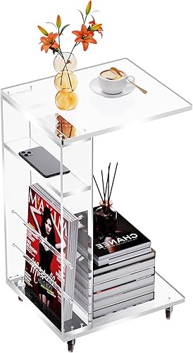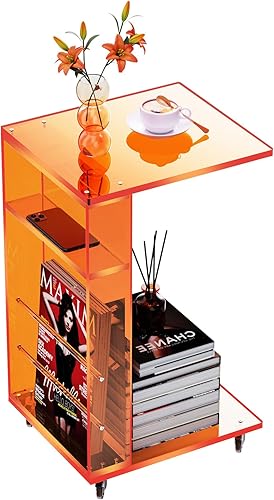 solaround Table d'Appoint en Acrylique, Bout de Canapé, Mobile avec 4 roulettes, Montage Facile, pour Salon, Chambre, 35 x 30 x 55 cm (Orange)