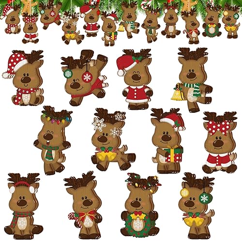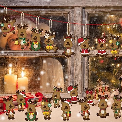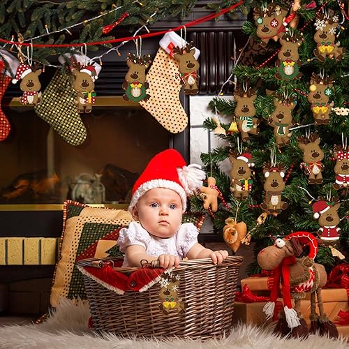 Decoration Noel Bois, 24 Pièces Pain d epice Decoration Suspension Noel, Deco Sapin de Noel en Bois, Pain Depice Deco Noel, Suspension Ornement Sapin de Noel pour Intérieure Festive