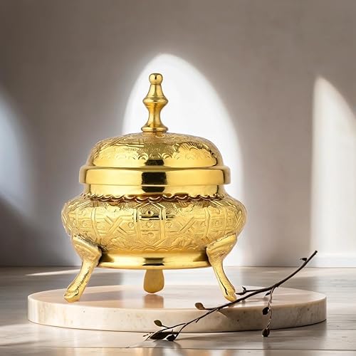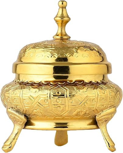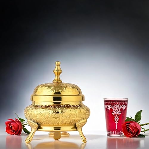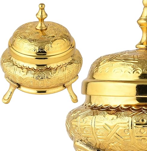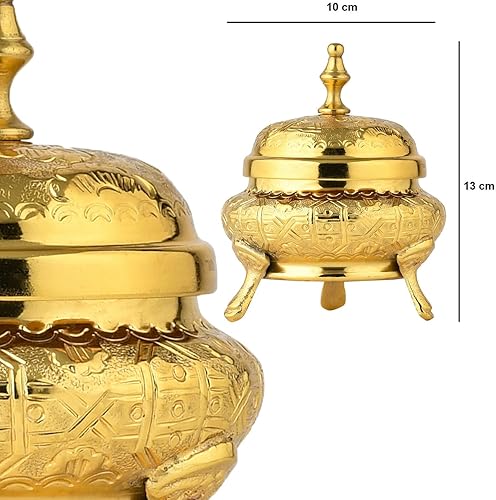 Marrakech - Décoration orientale - Bol à bijoux avec couvercle en métal - 13 cm - Décoration Ramadan dans le salon et la chambre à coucher sur la coiffeuse - Bonbonnière Nabih Gold