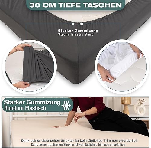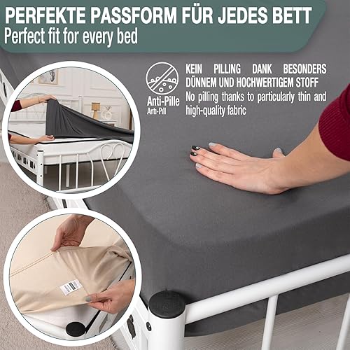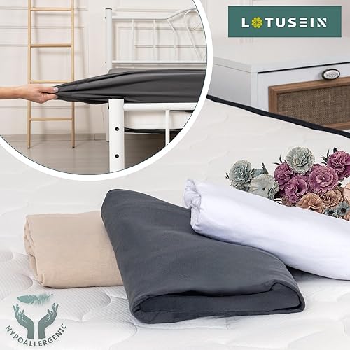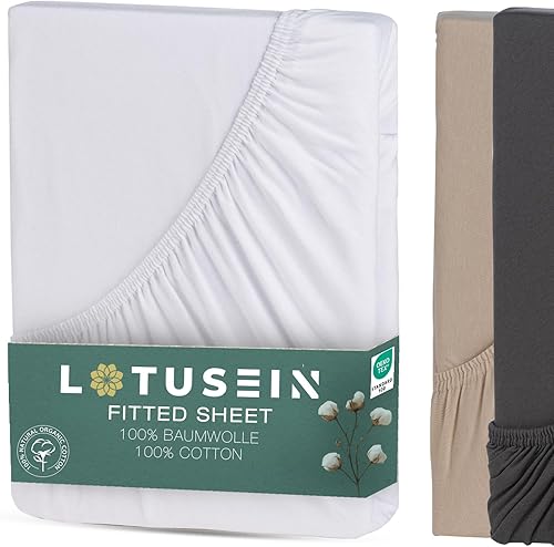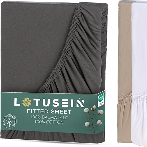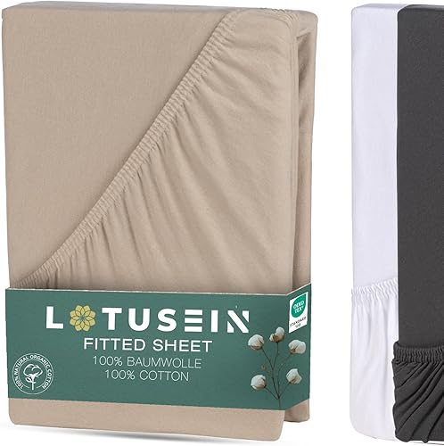 Lotusein Drap-housse 160 x 200 cm - Beige - 100 % coton - Jersey - Hauteur de matelas jusqu'à 30 cm - Certifié Öko-Tex Standard 100 - Beige - 160 x 200 cm