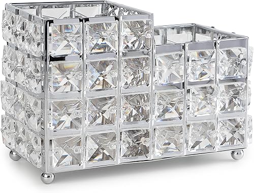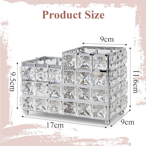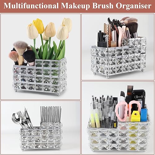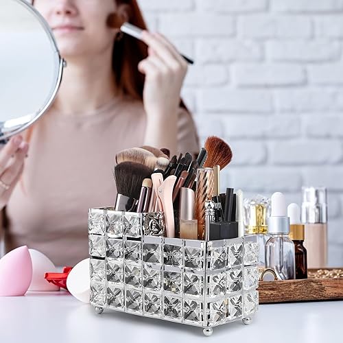 efuturetime Rangement Pinceaux Maquillage en Cristal, Pot Pinceau Maquillage Vintage Argent, Rangement Coiffeuse, Rangement Brosse a Cheveux, Boite Rangement Maquillage