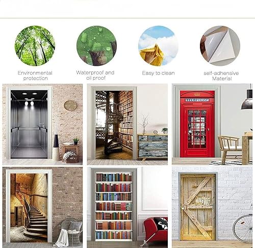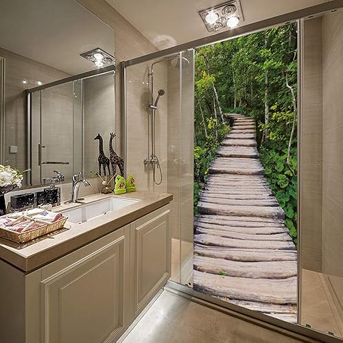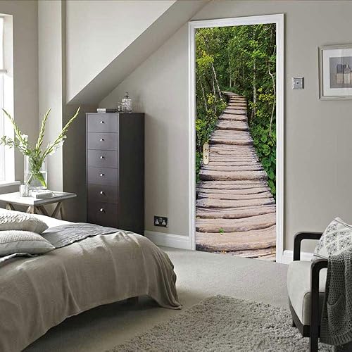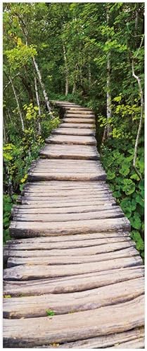 Poster Porte Sticker Porte Papier Peint Porte Trompe l'oeil porte Adhésif Autocollant Porte 3D pour Cuisine Chambre Salle de Bain Auto-adhésif Amovible Murale Décoration 63x205 cm Pont en bois Paysage