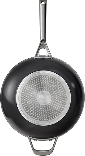 Ninja Extended Life CW90928DE Wok en céramique anti-adhésif (sans PFA, PFOA, plomb, cadmium), compatible avec induction, poignée en acier inoxydable, passe au four jusqu'à 285 °C, terre cuite et gris