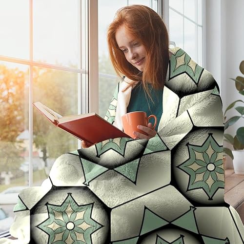 Plaid en polaire vert psychédélique Mandala pour canapé ou lit