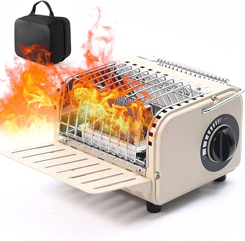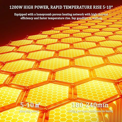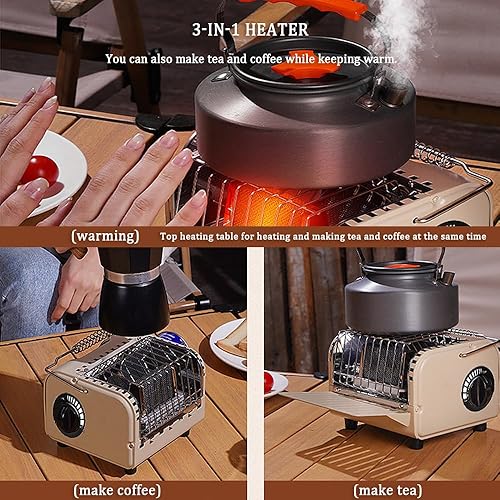 Chauffage à gaz portable 3 en 1, chauffage de poêle de camping 1200 W avec allumage piézo et contrôle rotatif de la température, chauffage intérieur et extérieur pour le camping, la pêche, la caravane