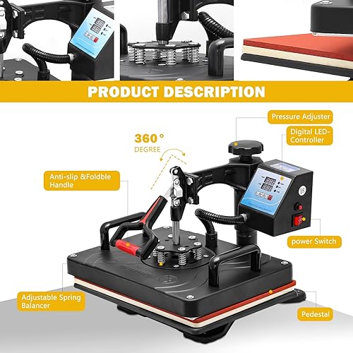 LetCart Machine à presser thermique 1400 W 29 x 38 cm | Presse à sublimation certifiée CE/FCC avec fonction rotative à 360° et régulateur de pression | Transfer professionnel pour textiles et