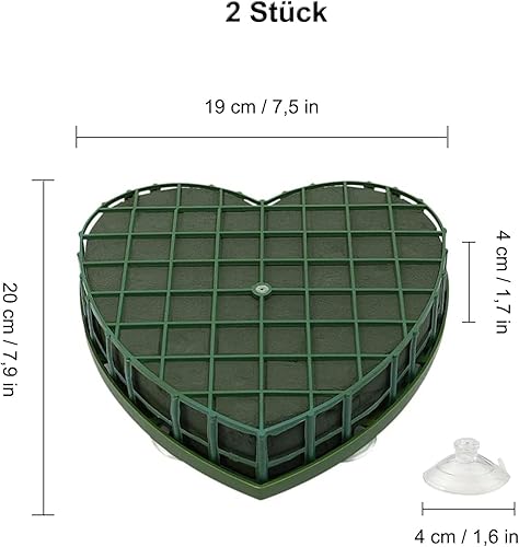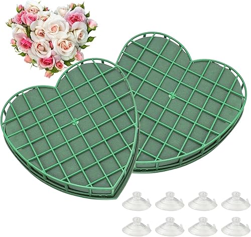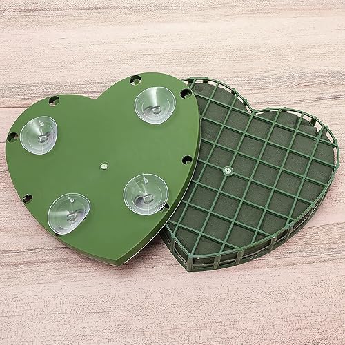 Plaque Mousse en Coeur, Mousse Florale pour Fleurs Fraîches avec Ventouse, Mousse Florale Humide avec Grille, pour Compositions Forales DIY, Mariage, Anniversaire