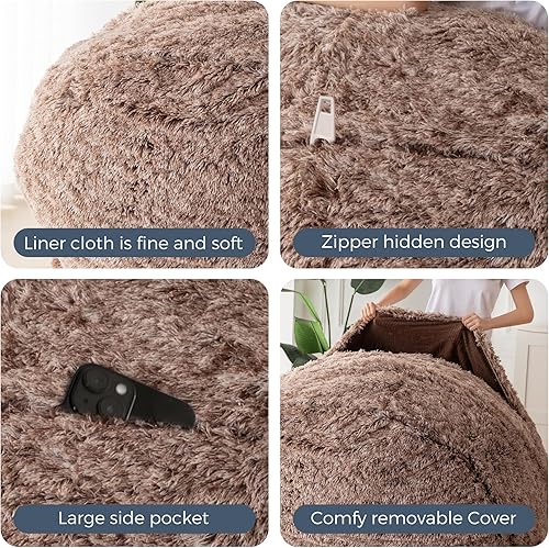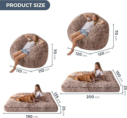 MAXYOYO Pouf géant - convertible de pouf en lit - Grand canapé avec housse en peluche et rembourrage moelleux inclus, pour adultes et invités, gris, 135 x 190 cm