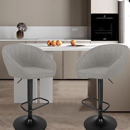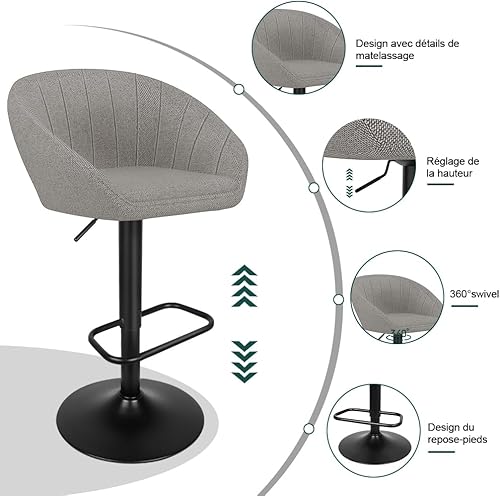 Chaise de Bar Moderne avec Repose-Pied, Chaise Haute Bar Lot de 2 avec Coussin Confortable, Tabouret Bar en Tissu pour Bar/Cuisine, Tabourets de comptoir avec Dossier (Beige crème)