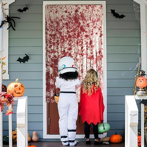 FePen 2 pièces Rideau de Porte Halloween, Rideau de Porte Sanglant d'halloween, Rideau Effrayant pour Halloween, Fournitures de Maison Hantée, Décorations effrayantes pour Votre fête d'halloween