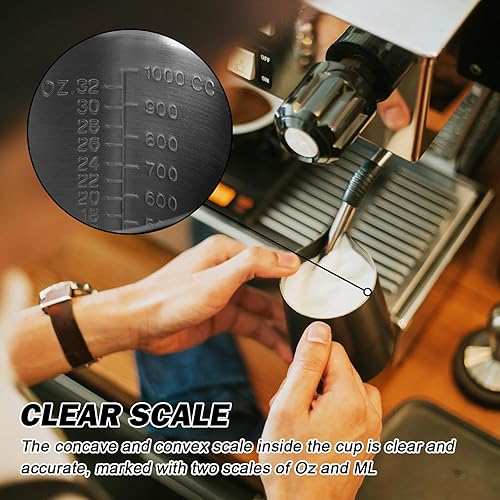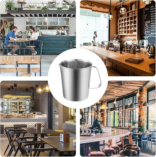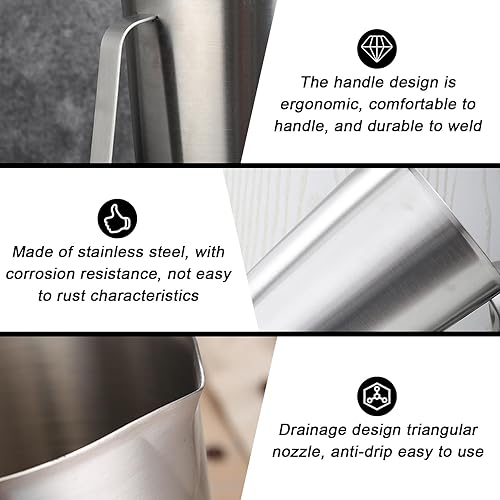 Sporgo Pot à lait en acier inoxydable de 1000 ml, doseur avec mesure graduée, moderne, argenté