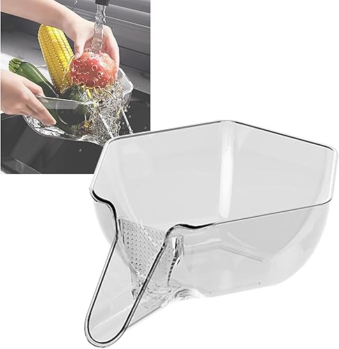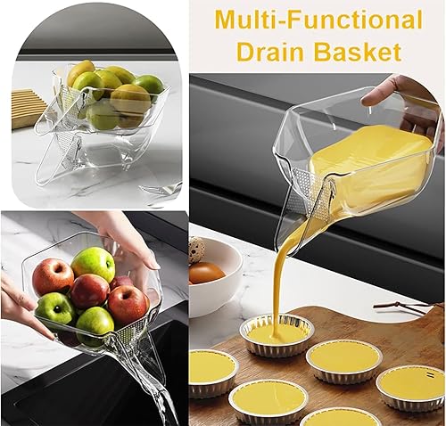 Panier de vidange multifonction, passoires avec bec, bol de nettoyage de fruits avec récipient filtrant, égouttoir pour aliments, fruits (transparent, 1 pièce)