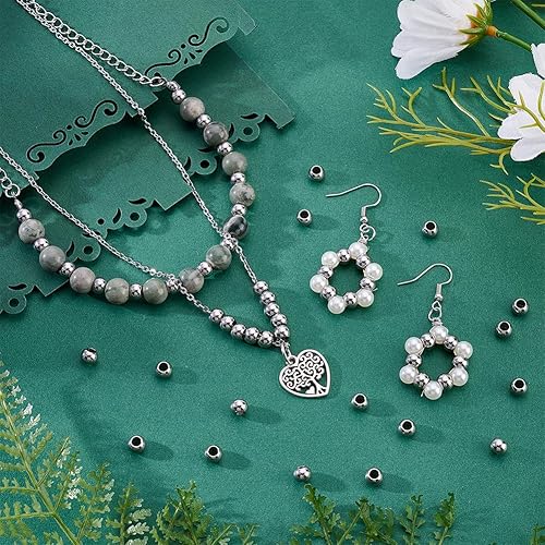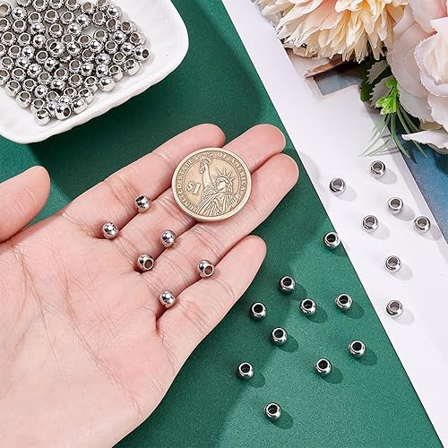 NBEADS 100 Pcs Perles Européennes en Acier Inoxydable, Perles à Grand Trou Perles D'Espacement Perles Lisses Rondes en Métal pour la Fabrication de Bijoux de Bracelet Collier, 6x4.5mm, Trou: 2.5mm