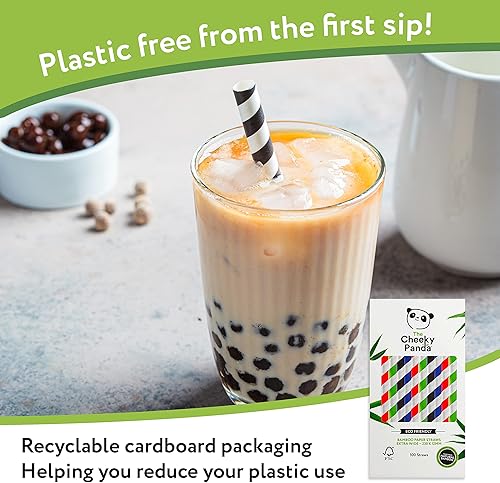The Cheeky Panda - Paille Bubble Tea Carton Jetables, Multicolores, Lot de 100 Paille Bambou