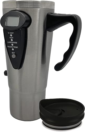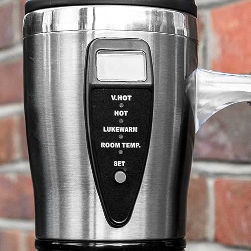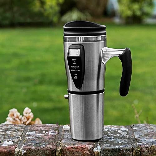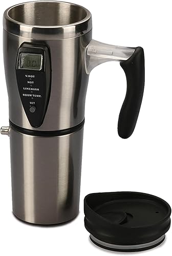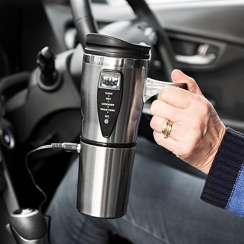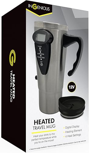 InGenious Mug de voyage chauffant à quatre niveaux de réglage de chaleur et adaptateur allume-cigare 12 V