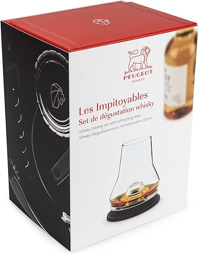 Peugeot- Coffret Dégustation Whisky - Verre à Whisky + Socle Rafraîchissant + Sous-Verre - Idée Cadeau Whisky, Armagnac, Cognac