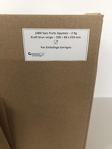 Emballage garrigou 1000 sacs primeur fruits et légumes papier kraft alimentaire 2kg 200x310+60 m/m