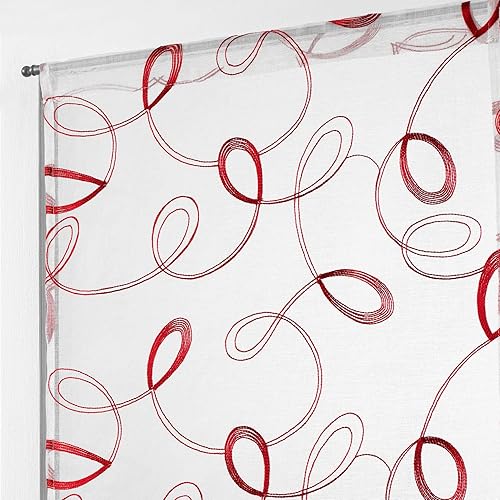 Douceur d'Intérieur, Paire de Voilages Passe-Tringle (2 x 60 x 90 cm) Hoops Rouge, Voile Sablé Brodé
