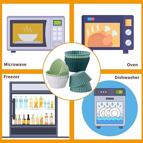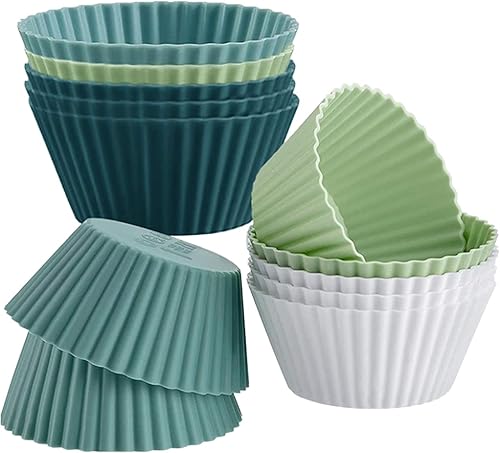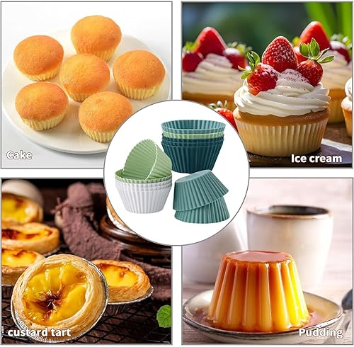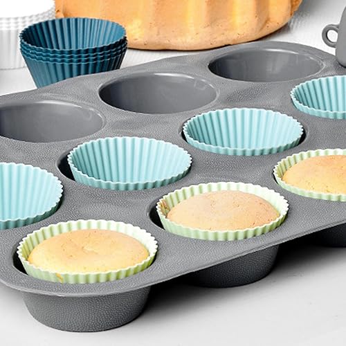 Lot De 12 Moules À Muffin En Silicone, Anti Adhéaif Moule Muffins Silicone, Moules À Cupcakes Réutilisables Sans BPA Moules À Muffins En Silicone, Tasses De Cuisson Rond Pour Gâteaux Crème Et Pudding