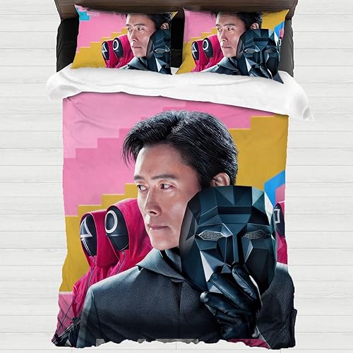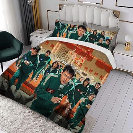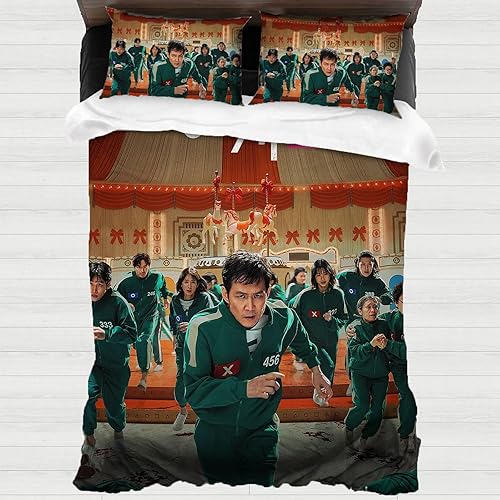 Squid Games 456 Parure de lit pour enfant et adulte en microfibre avec housse de couette de 135 x 200 cm et 2 taies d'oreiller avec fermeture éclair, pour adulte (merch)