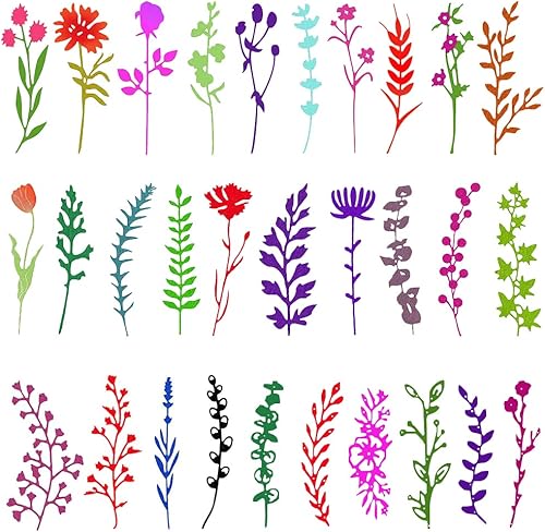 FineGood Lot de 30 matrices de découpe en métal pour la fabrication de cartes Motif fleurs sauvages