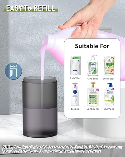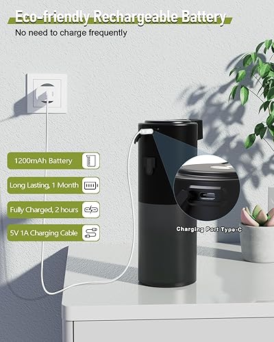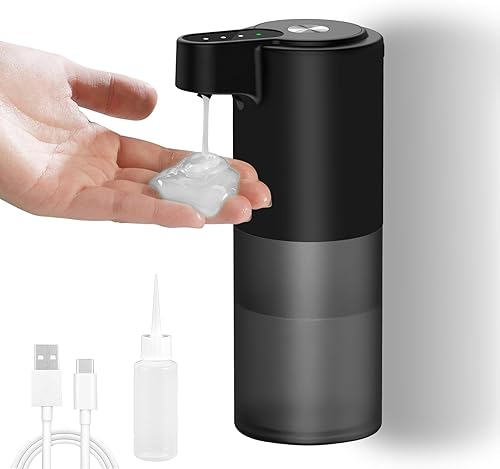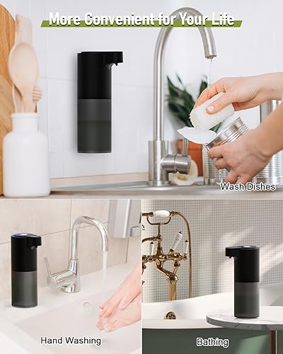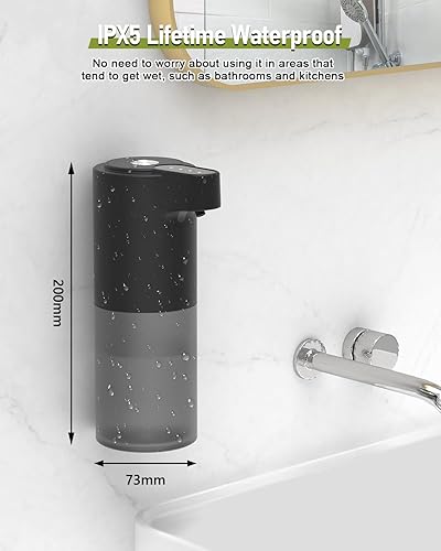 Dalugo Distributeur de savon automatique, étanche IPX5, fixation murale, noir, rechargeable par USB C, distributeur de savon automatique pour cuisine, salle de bain, toilettes