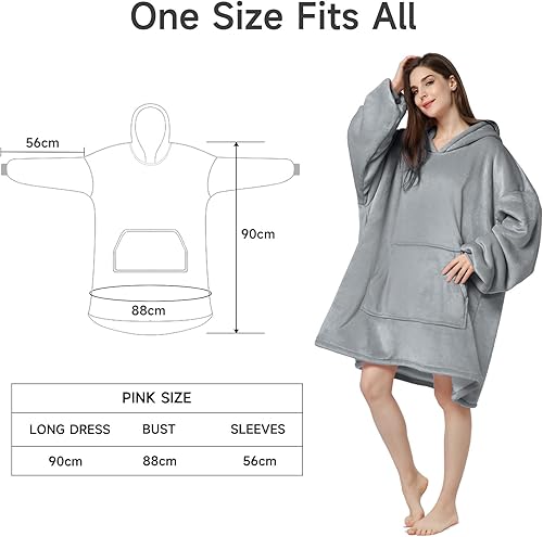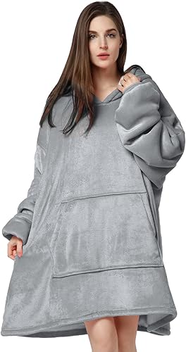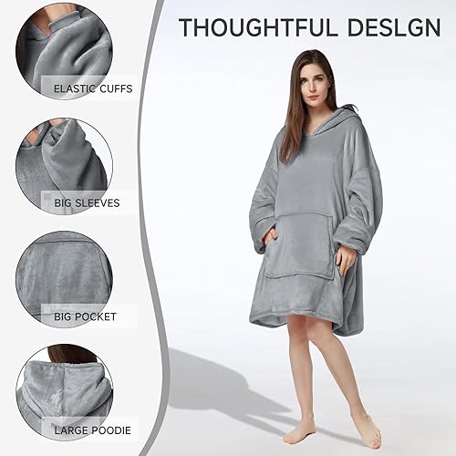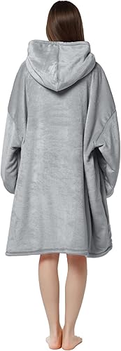 Couverture à capuche pour femme - En peluche - Chaude - Oversize - Pour avoir chaud en intérieur et en extérieur - Gris