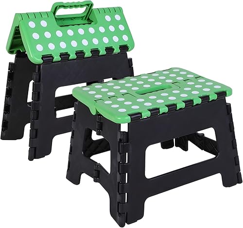 Marchepied pliable de 22,9 cm pour adultes et enfants, antidérapant, pliable pour cuisine, jardin, chambre à coucher, marchepied en plastique (vert et noir)