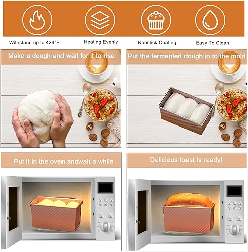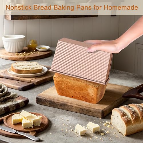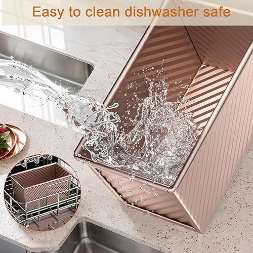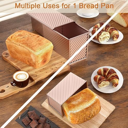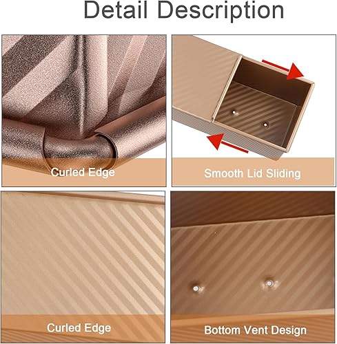volumoon Boîte à Toasts avec Couvercle Coulissant, Boîte à Pain Grillé, Moule à Pain Antiadhésif, Boîte à Pain Ondulé, Moules de Pâtisserie, Moule à Gâteau, Or Rose