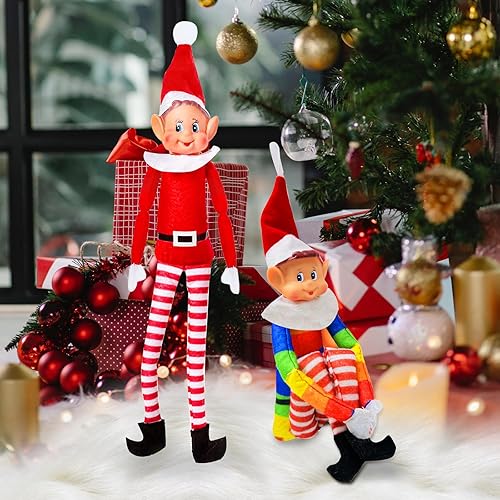 ZPQAODI Lutin Farceur de Noel, Lot de 2 Lutins Farceur Yeux Bleus Lutin de Noël, Corps Mou et Visage en Vinyle Elfe de Noël Farceur, Elfie Rouge