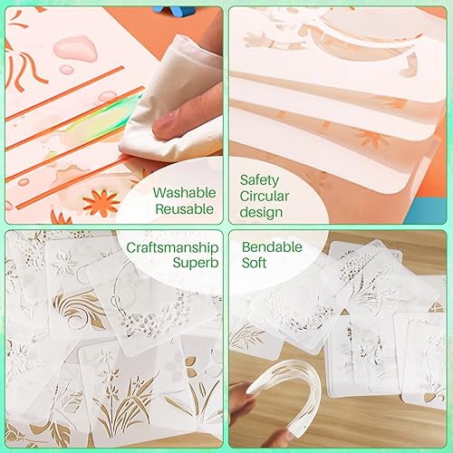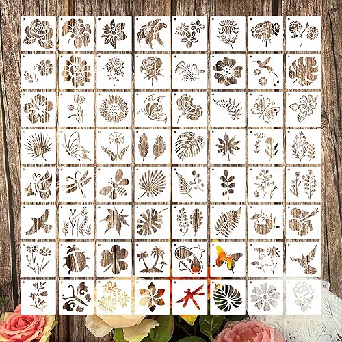 Lot de 64 pochoirs à fleurs pour peinture, 7,6 cm, pochoirs réutilisables en plastique pour peinture sur bois, mur, carrelage, décoration d'intérieur