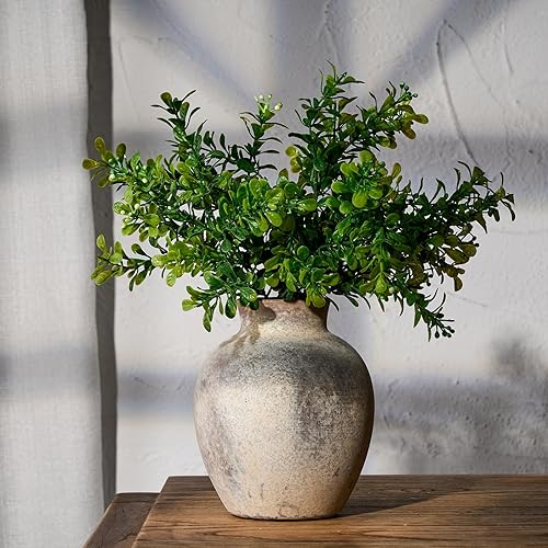 SIDUCAL Vase Décoratif en Céramique | Poterie Rustique de 15,2 cm | Style Bohème pour Décoration d'Intérieur | Terre Cuite Blanchie à la Chaux pour Table, Salon, Salle de Bain