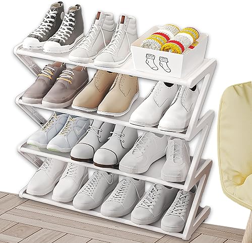 Qizeroty Étagère À Chaussures Petite Étagère De Rangement Multifonctionnelle en Forme De Z, Organisateur De Rangement pour Baskets À Plusieurs Niveaux pour L'entrée, Le Couloir Et Le Coin