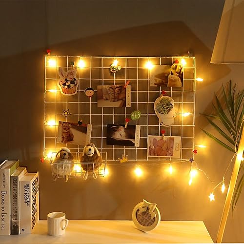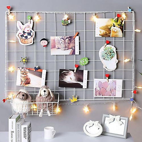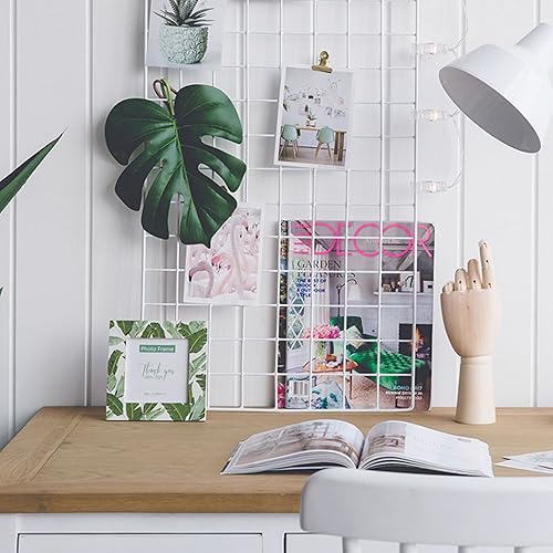 CODIRATO Lot de 2 Mur de Grille Photo, Organisateur de Décoration Murale avec Crochets et Clips en Bois Affichage Grille pour DIY Décoration Murale Famille, Cuisine, Bureau (65 * 45cm, Blanc)