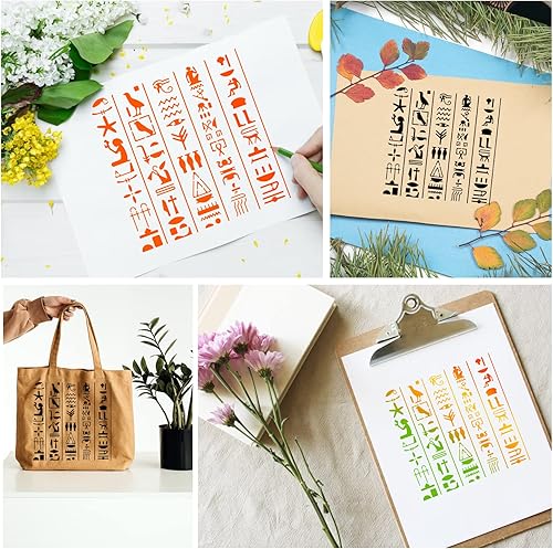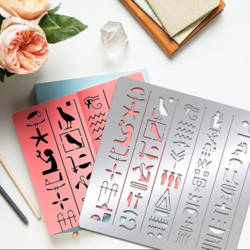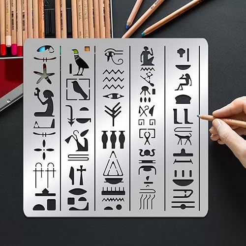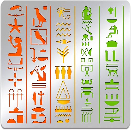 BENECREAT Pochoirs à Thème Egypte, Pochoir de Dessins de Peinture en Acier Inoxydable D'Éléments D'Icône D'Egypte de 15.6x15.6 cm pour la Gravure et le Scrapbooking